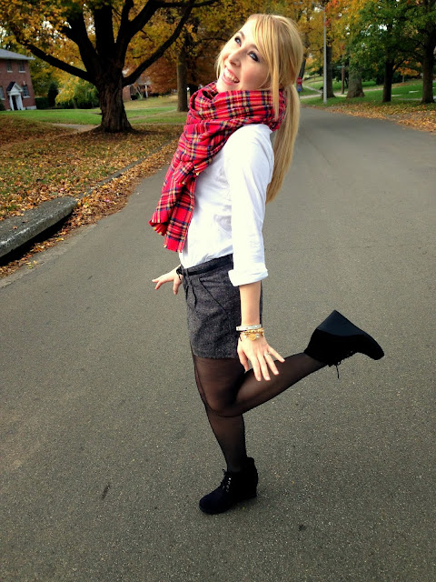 I absolutely love this look! I'm a huge fan of shorts with tights for Fall/Winter seasons but I do have say that I'm in love with the scarf! It really brings the whole outfit together. Love it!