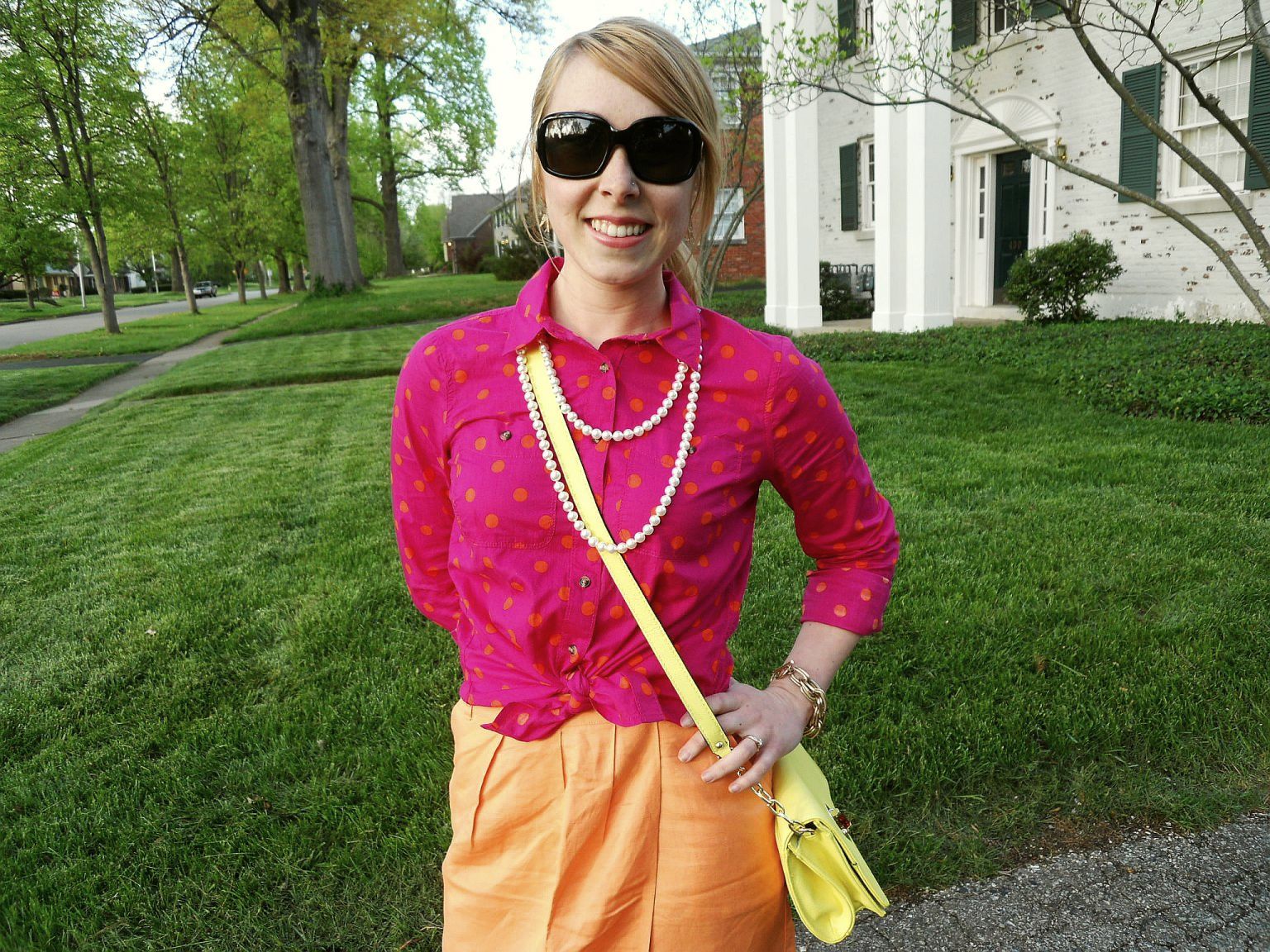 Closet Remix Challenge Day #1: Fuchsia,Orange Polka Dots, Pop of Neon