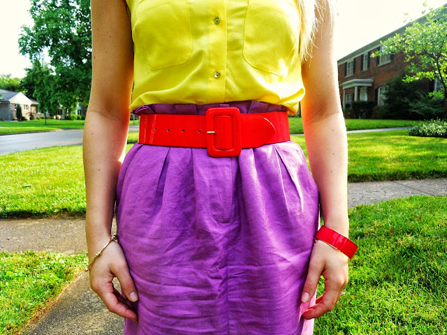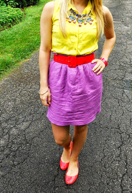 Yesterday I had a floor interview at a boutique, and I was told to dress in an outfit that described my style. That’s a tough question for most, but for some reason, I had no problem picking out my outfit yesterday! I knew I wanted to wear something that was classic yet colorful (the proverbial “classic with a twist” style), so I grabbed my yellow blouse and immediately gravitated towards my purple skirt. Had you asked me a year ago to pair something with my purple skirt, the yellow shirt would have been THE LAST thing I would have chosen, “too daring for me!” I would have protested. I am much more comfortable in my style now, so this felt as natural to me as pairing gingham with polka dots…Or, ranch with pickles…Peanut butter on waffles? No?