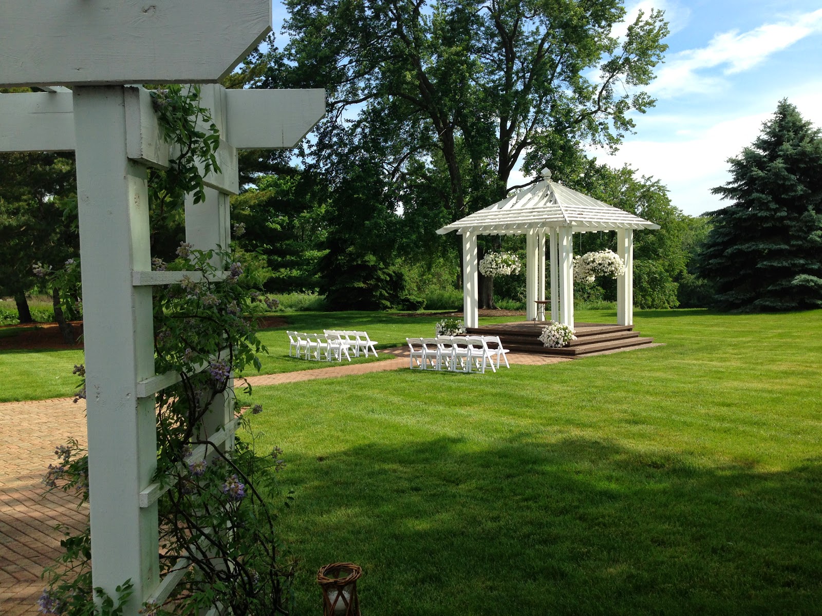 Thursday: The rehearsal and wedding took place at the Mustard Seed Gardens in Noblesville, Indiana, which was BEAUTIFUL! I regret not taking more pictures than I did, but when you’re trying to run through the ceremony and working out the kinks, you tend to forget everything else. I did manage to snap a couple. That night, I finished The Bride’s wedding present (I know, a little last minute for me), and then some of the bridesmaids helped The Bride finish the wedding favors. We finally made it in bed sometime after midnight, but I doubt any of us slept very much.