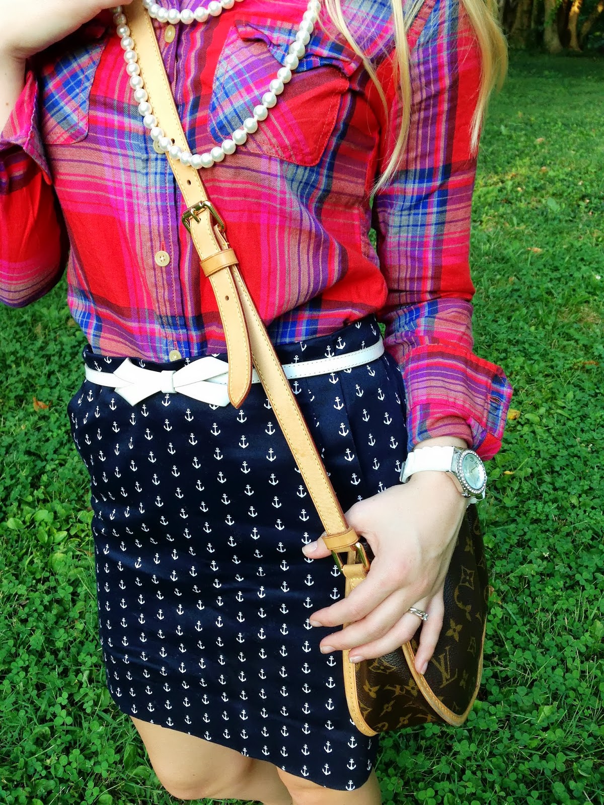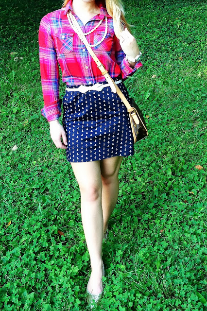I really, really like that brightly colored plaid top! It makes for a cool contrast with the anchors, too!