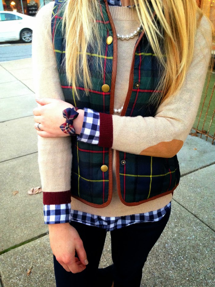 Vest: Lauren Ralph Lauren | Sweater: J.Crew Factory (love this one, this one, & this one) | Button down: J.Crew Factory | Denim: Paige | Shoes: Tory Burch | Bracelet: Brooks Brothers | Pearls: heirloom