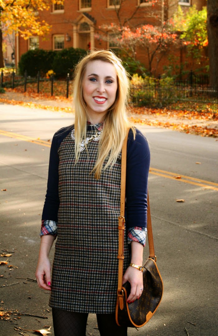 In this last outfit I kept it casual for running errands or brunch with girlfriends. The blazer is a great piece for dressing up a denim outfit and adding a touch of sophistication. The mustard of the blazer matches the yellow threads running through the plaid button down, and the chestnut boots and cream scarf make this a cozy fall outfit. If you are looking for an affordable option (this blazer is over $300), Poshmark has quite a few listings from Zara and Forever 21. You can bet I will be trying to snag this plaid shirt from J.Crew Factory (sold out online) during the Labor Day sales!